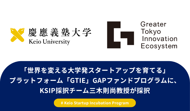 慶應スタートアップインキュベーションプログラム(KSIP)の採択チームである、慶應義塾大学理工学部 機械工学科 三木則尚 教授 が、「世界を変える大学発スタートアップを育てる」プラットフォーム Greater Tokyo Innovation Ecosystem (以下、GTIE)が運営する「GTIE GAPファンド2024 エクスプロール 第3回」において採択されました。