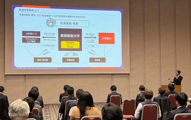 続いて、新堂信昭 慶應義塾大学イノベーション推進本部長より、慶應義塾大学発スタートアップの育成支援の取り組みを紹介させていただきました。